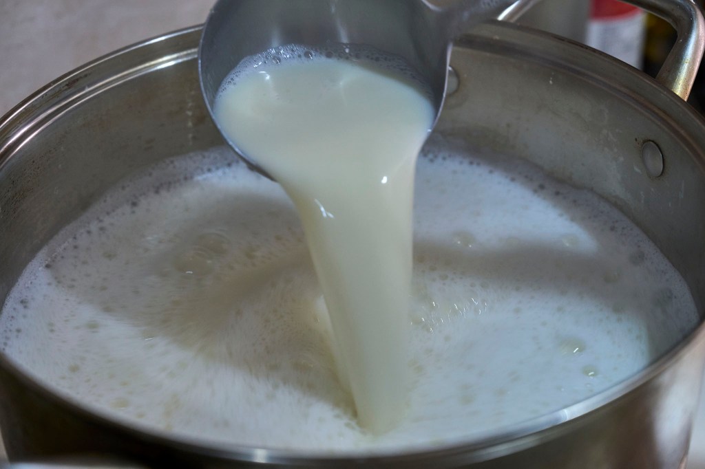 5,Transfer the filtered soy milk to a pot and boil over the stove. There are two important things to watch for during this process: