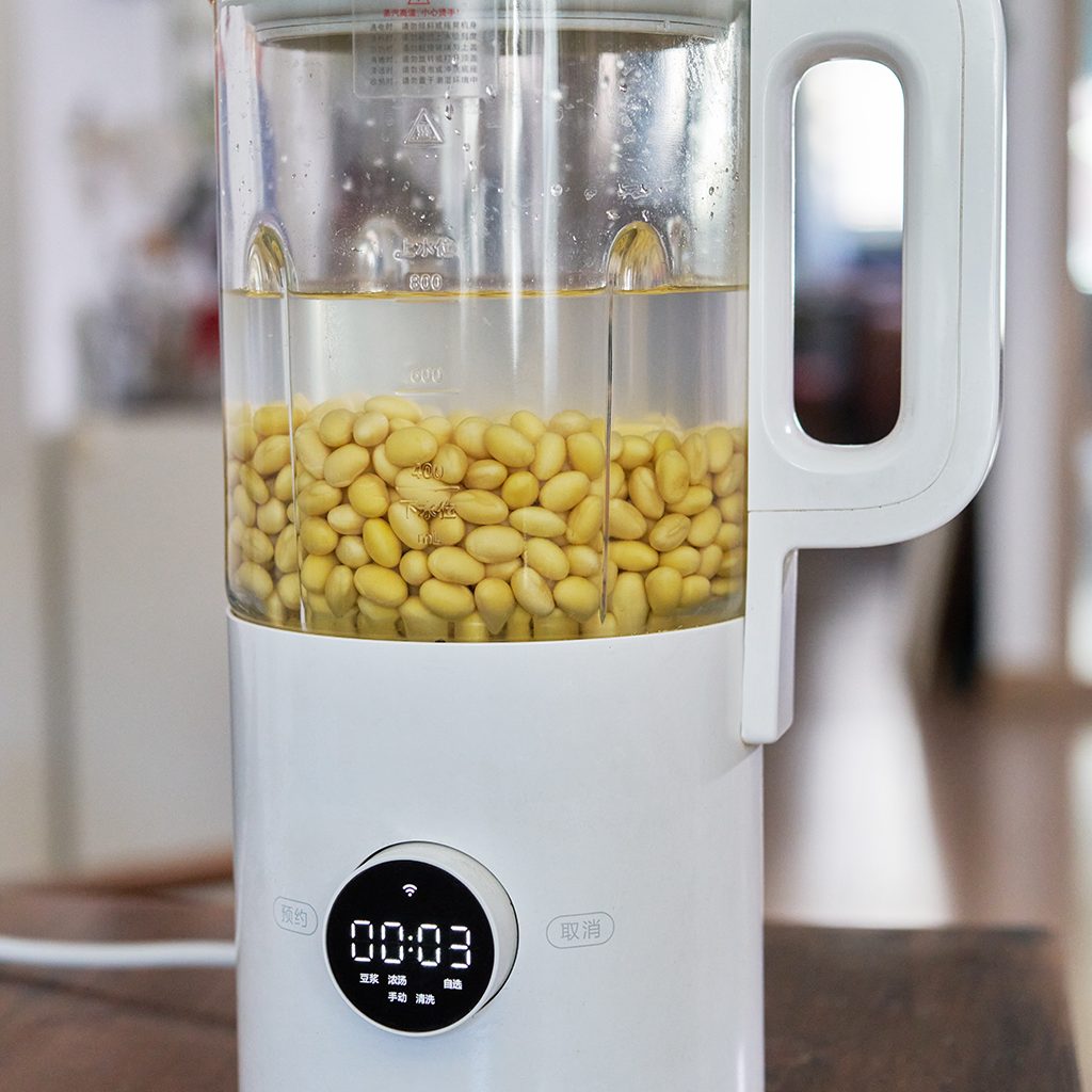 2,Drain the soaked soybeans and discard the soaking water. Transfer the beans into a blender or high-speed food processor, adding the measured water from the recipe. Blend until you get a smooth soybean paste.