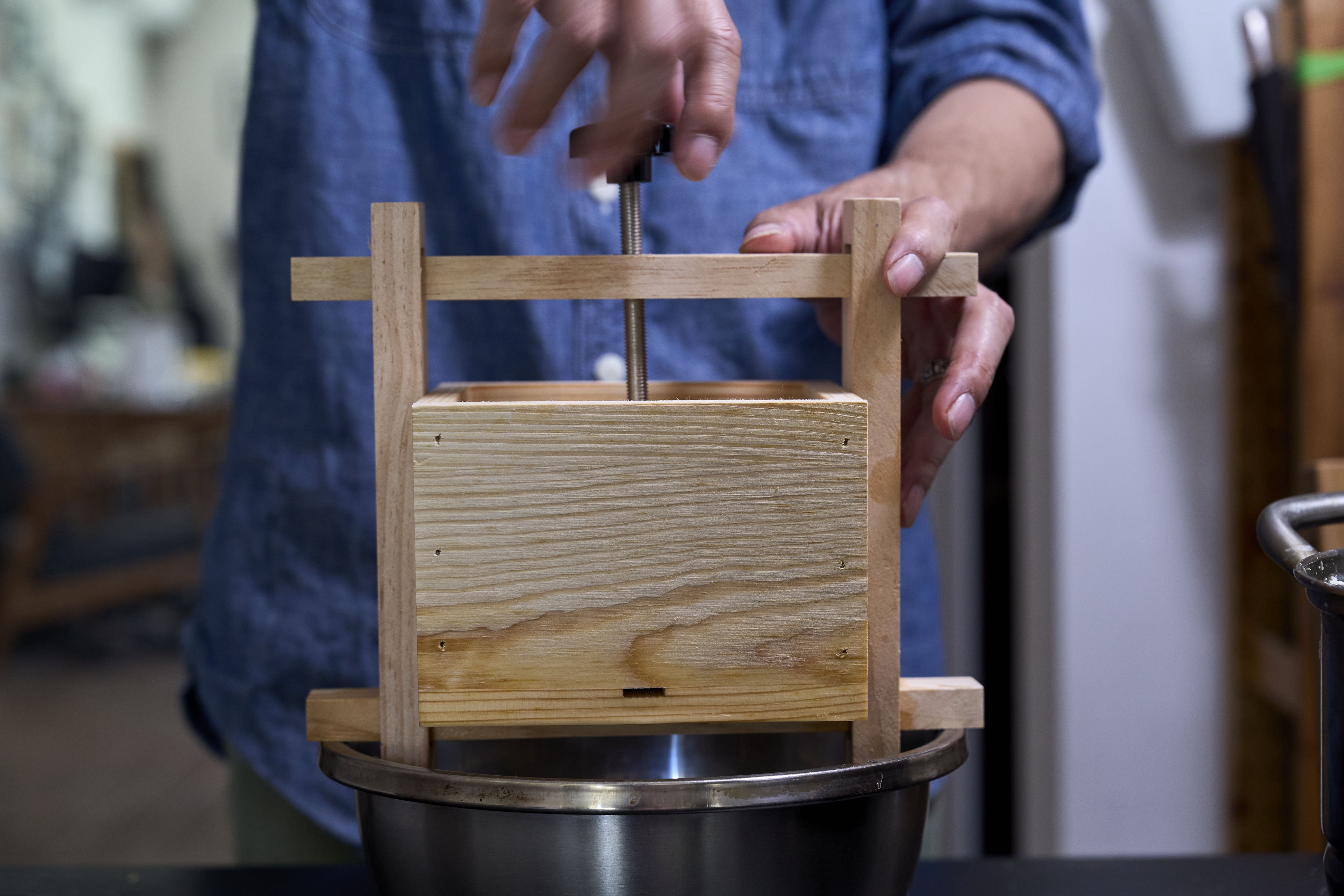 7,This is a small wooden tofu mold — I bought it partly because I thought it was cute, and partly out of a romantic idea that maybe a subtle wood aroma would linger in the finished tofu.