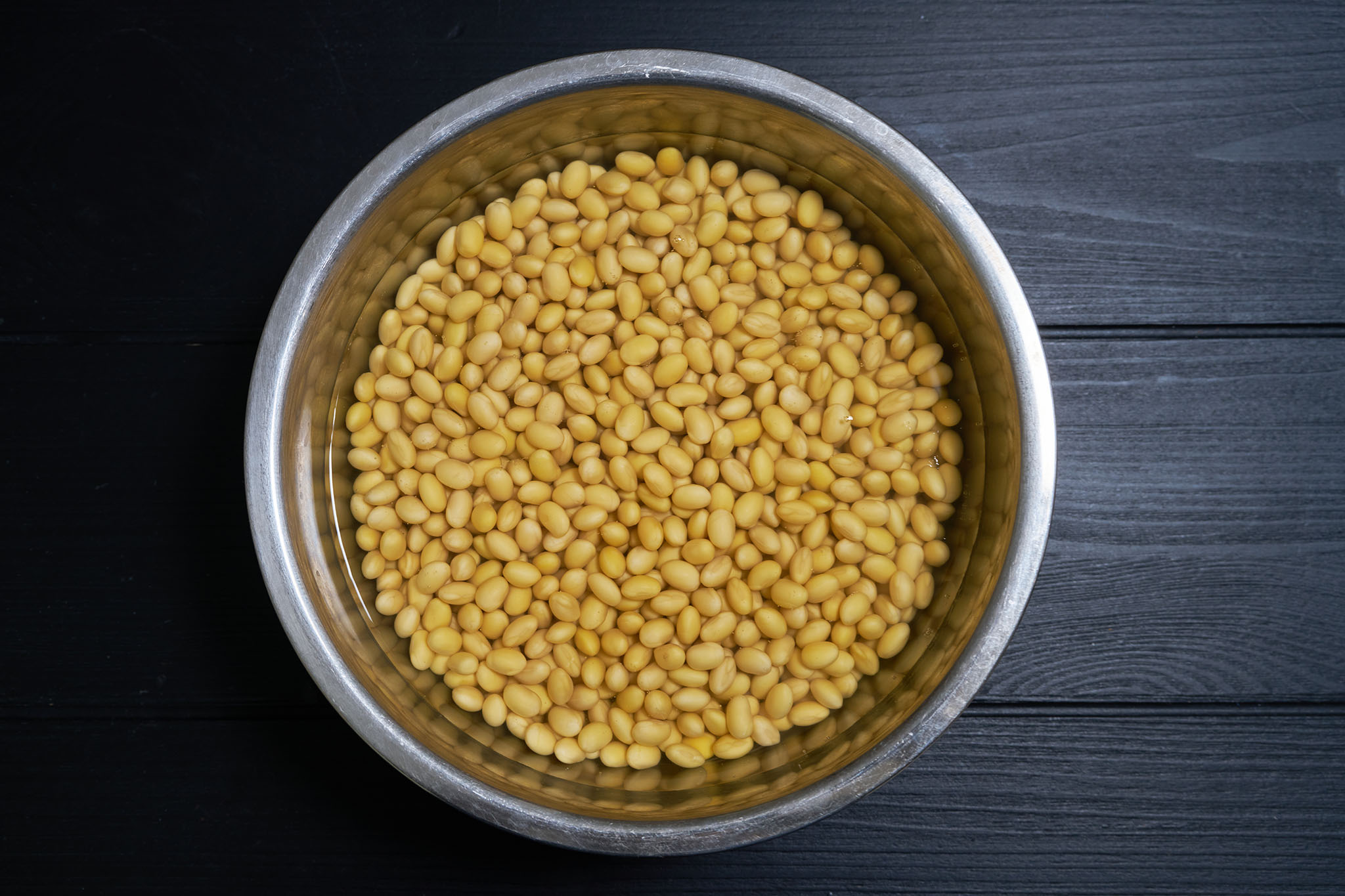 1,Start by soaking clean fresh soybeans overnight. This soaking water is not part of the recipe ratio. Be sure to use plenty of water — enough so that even after the soybeans have fully absorbed water, they still remain submerged.