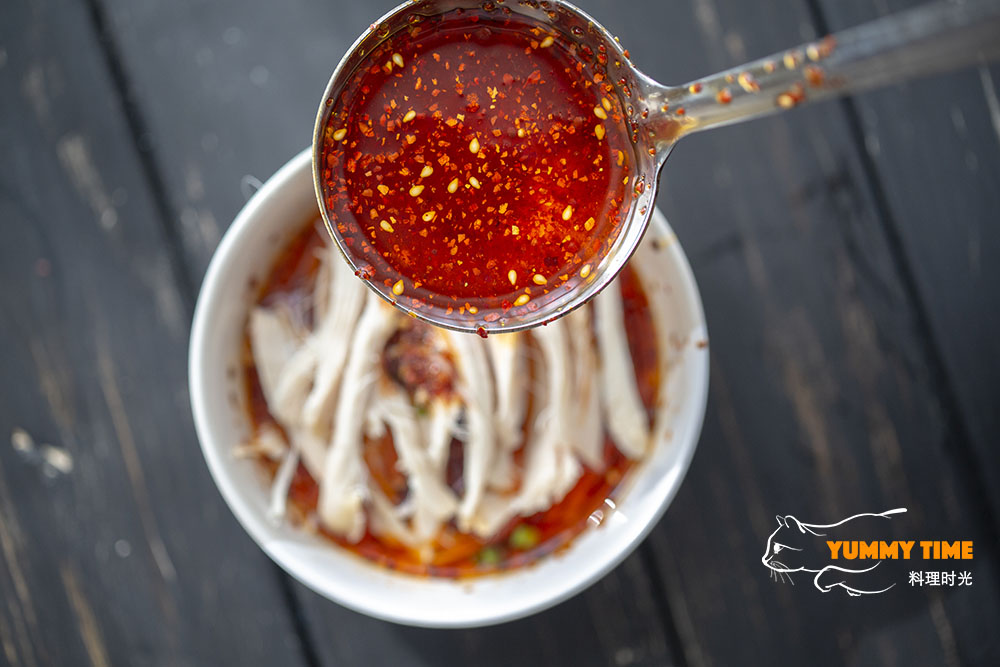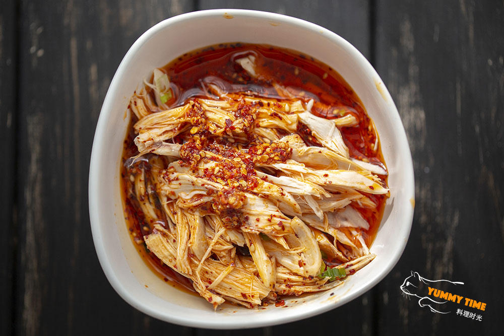 A simple yet flavorful bowl of Spicy Chili Oil Shredded Chicken Rice Noodles is complete.
