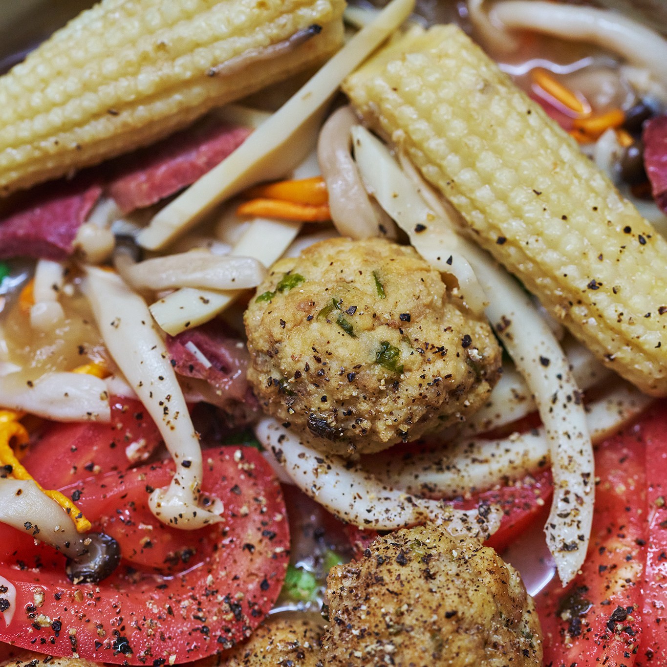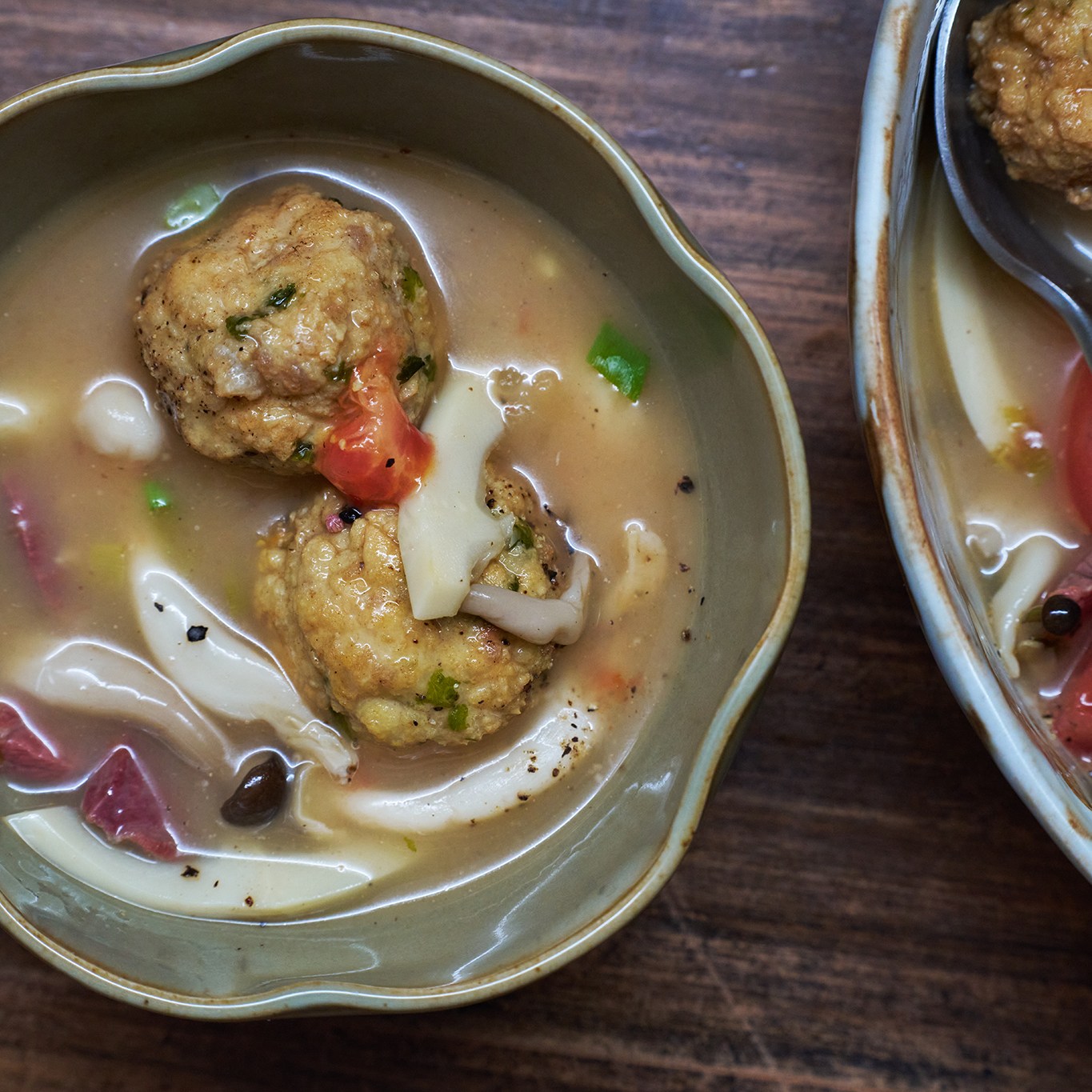 The tofu meatballs stay juicy and springy, the baby corn adds a sweet crunch, and all the ingredients come together in a light but flavorful broth.