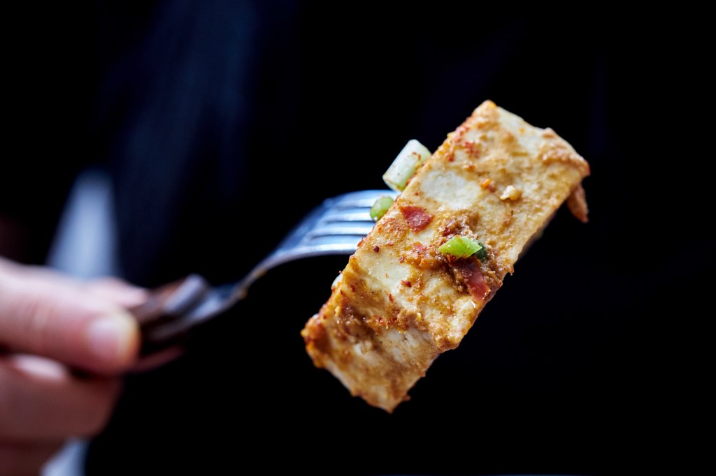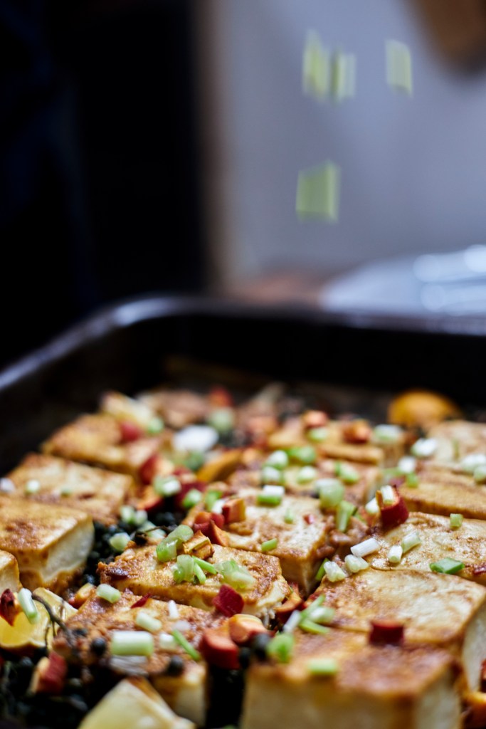 But it would be a pity to use it only for Mapo Tofu. Try this doubanjiang-roasted tofu — especially if you’re not confident with stir-frying in a Chinese wok — you’re almost certain to fall in love with it. An oven will do.