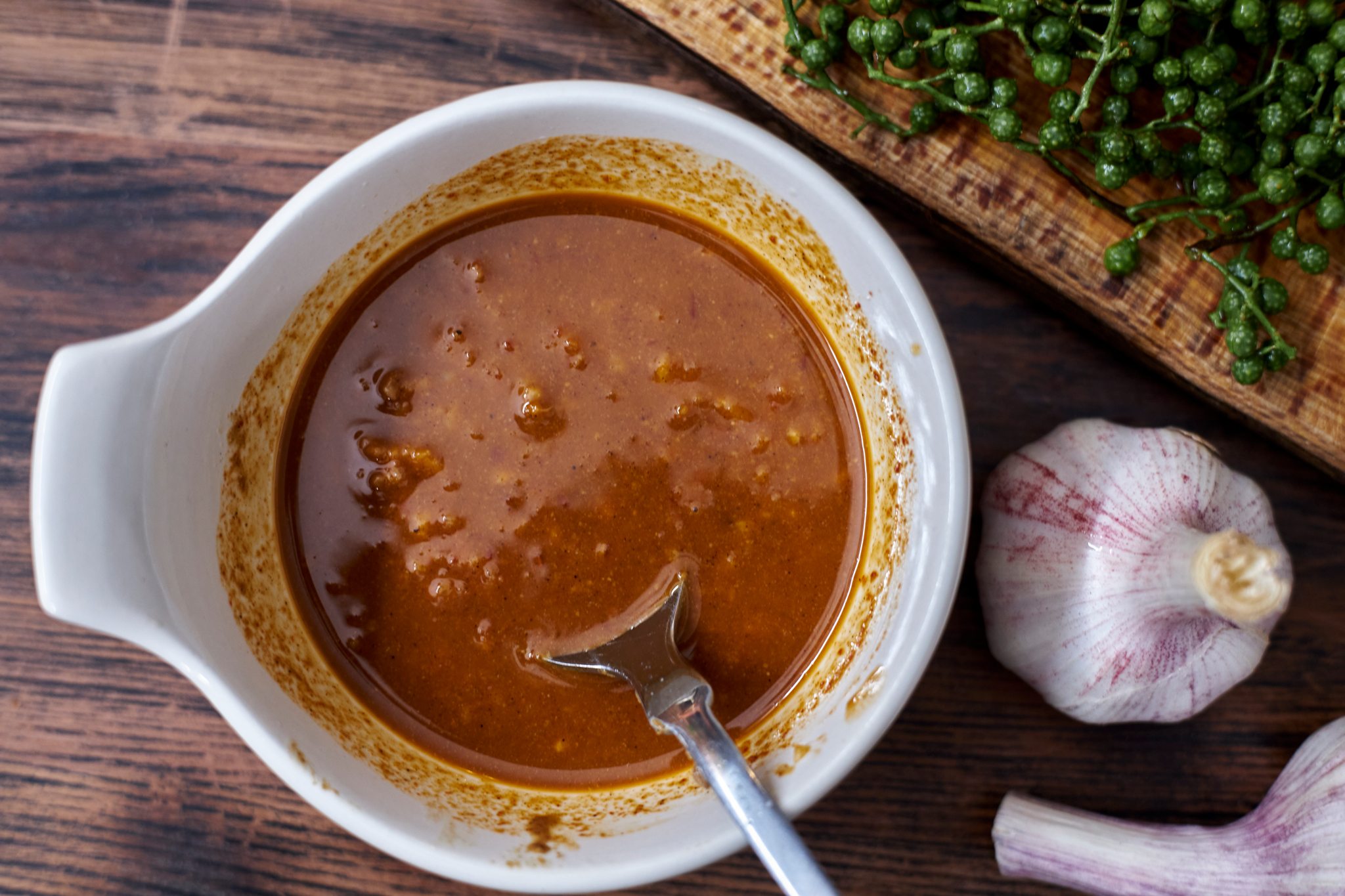 1,Make the roasting sauce: Mix Doubanjiang with olive oil in a 1:5 ratio, then stir in a little garlic juice until smooth. Doubanjiang is already salty enough, so there’s no need to add extra salt.