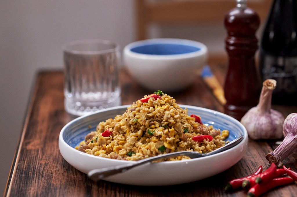 If you simply throw everything into the pan at once, some ingredients will turn tough, and you might even end up with a burnt, sticky mess.