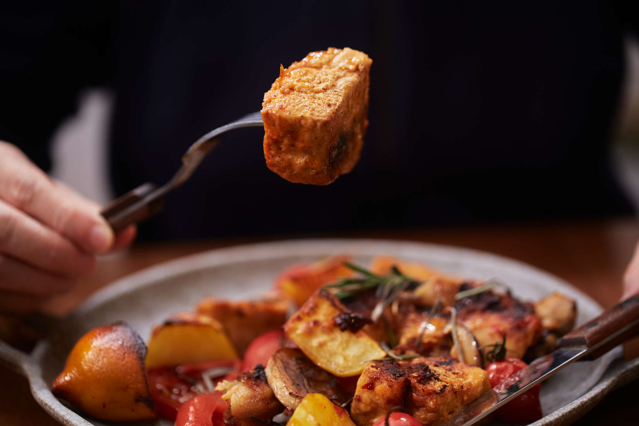 It’s rich with deep, saucy aromas; the meat drippings turn sweet-savory as they caramelize; and the tofu—crispy at the edges and juicy inside—bursts softly the moment you bite into it. A delightful surprise in both flavor and texture.