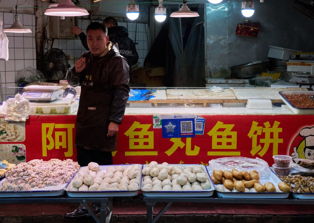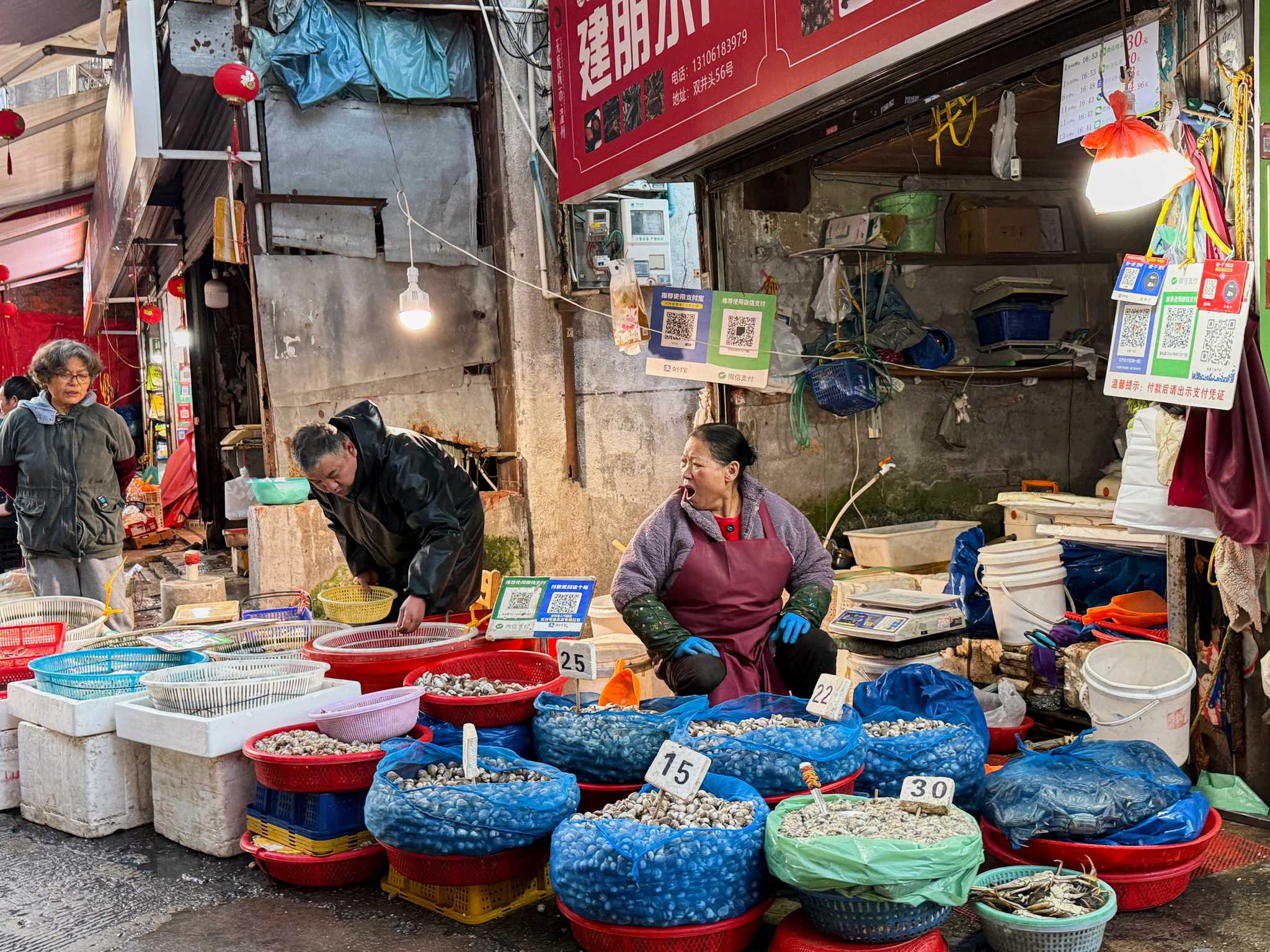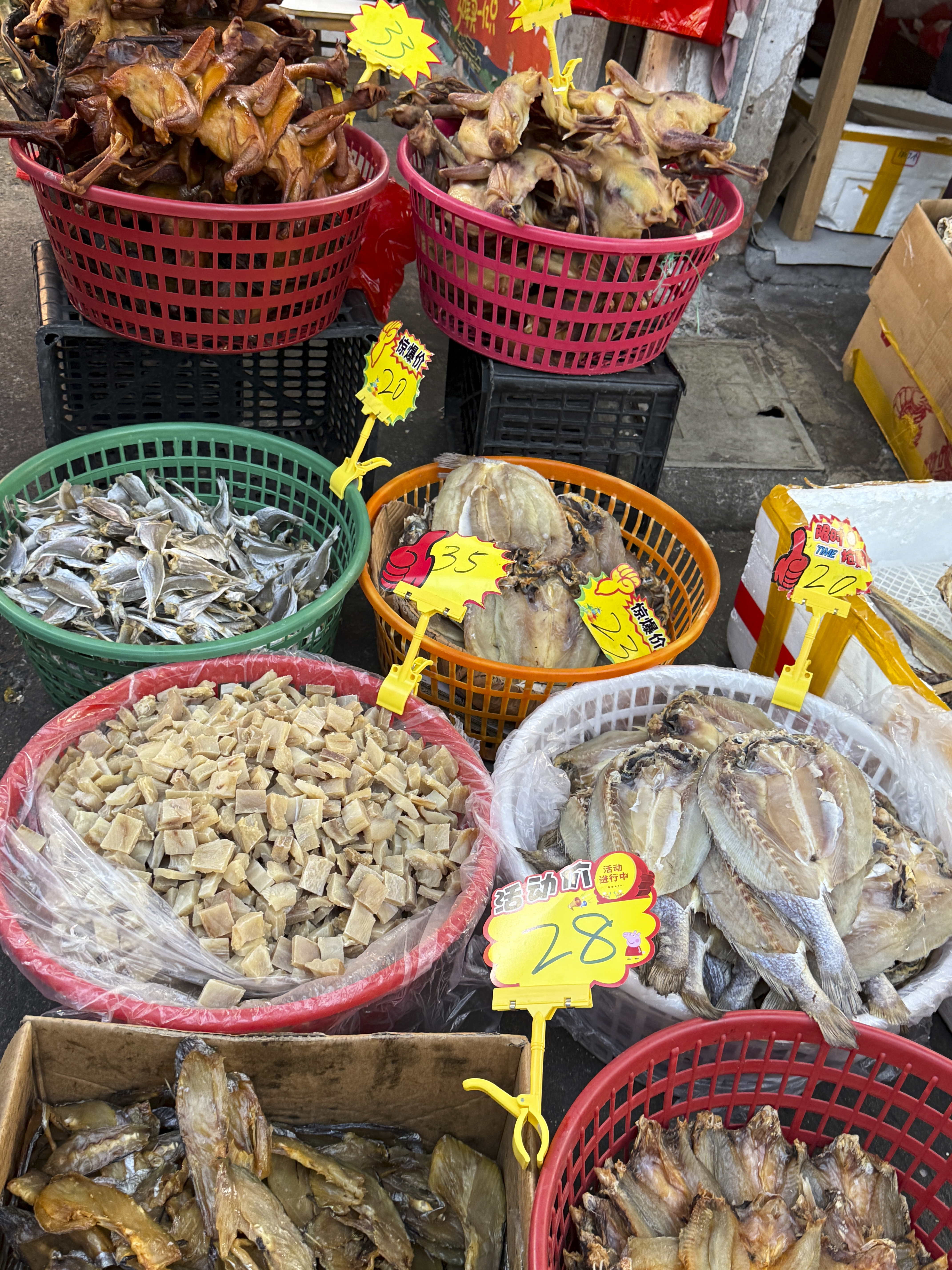 There was no spacious and bright hall, only a narrow and crowded street; There were no neatly arranged stalls, but filled with basket vendors; The goods are abundant, the people are crowded, the ground is wet, and the sound is noisy… It is exactly the same as the food market in memory.
