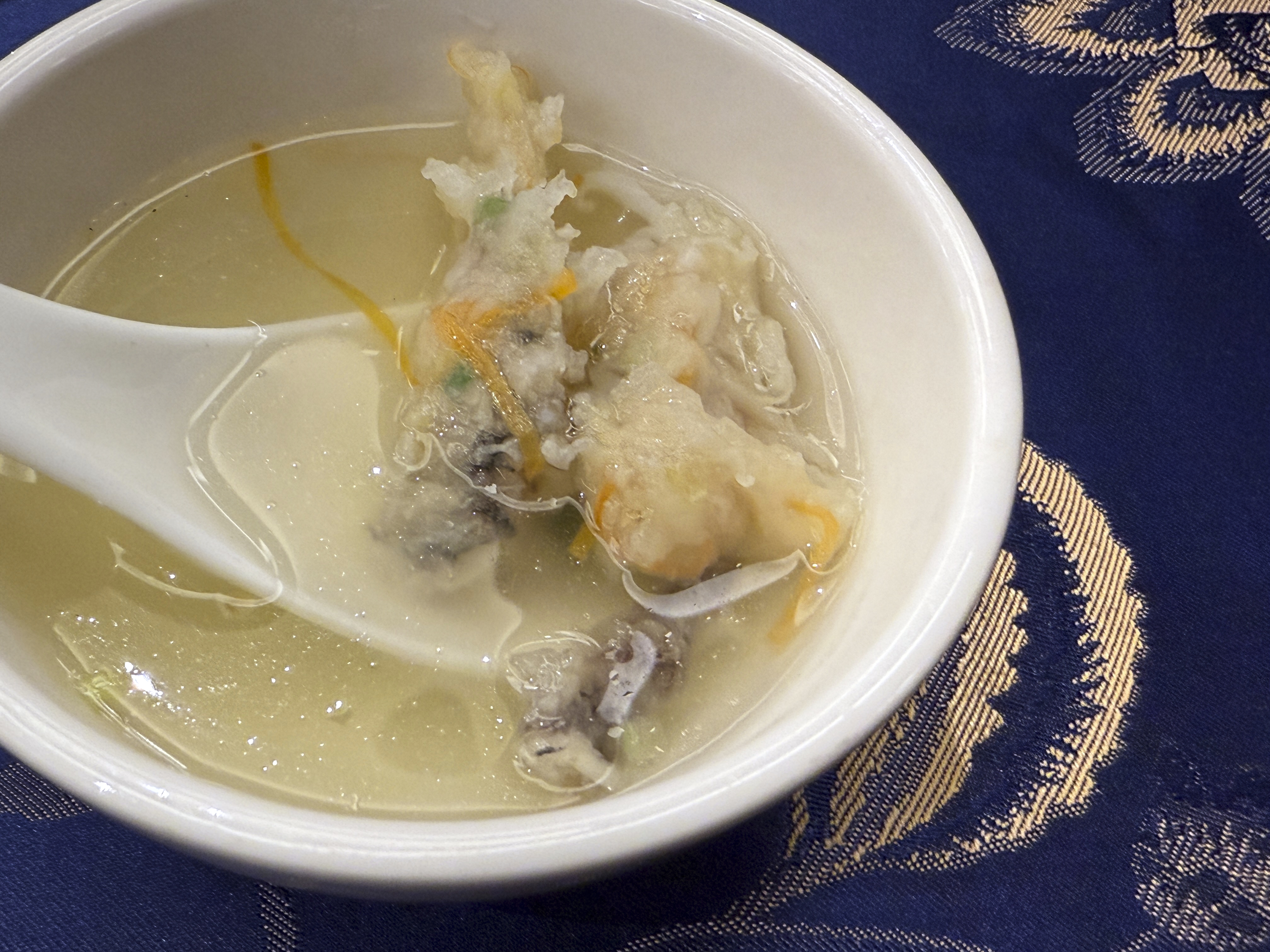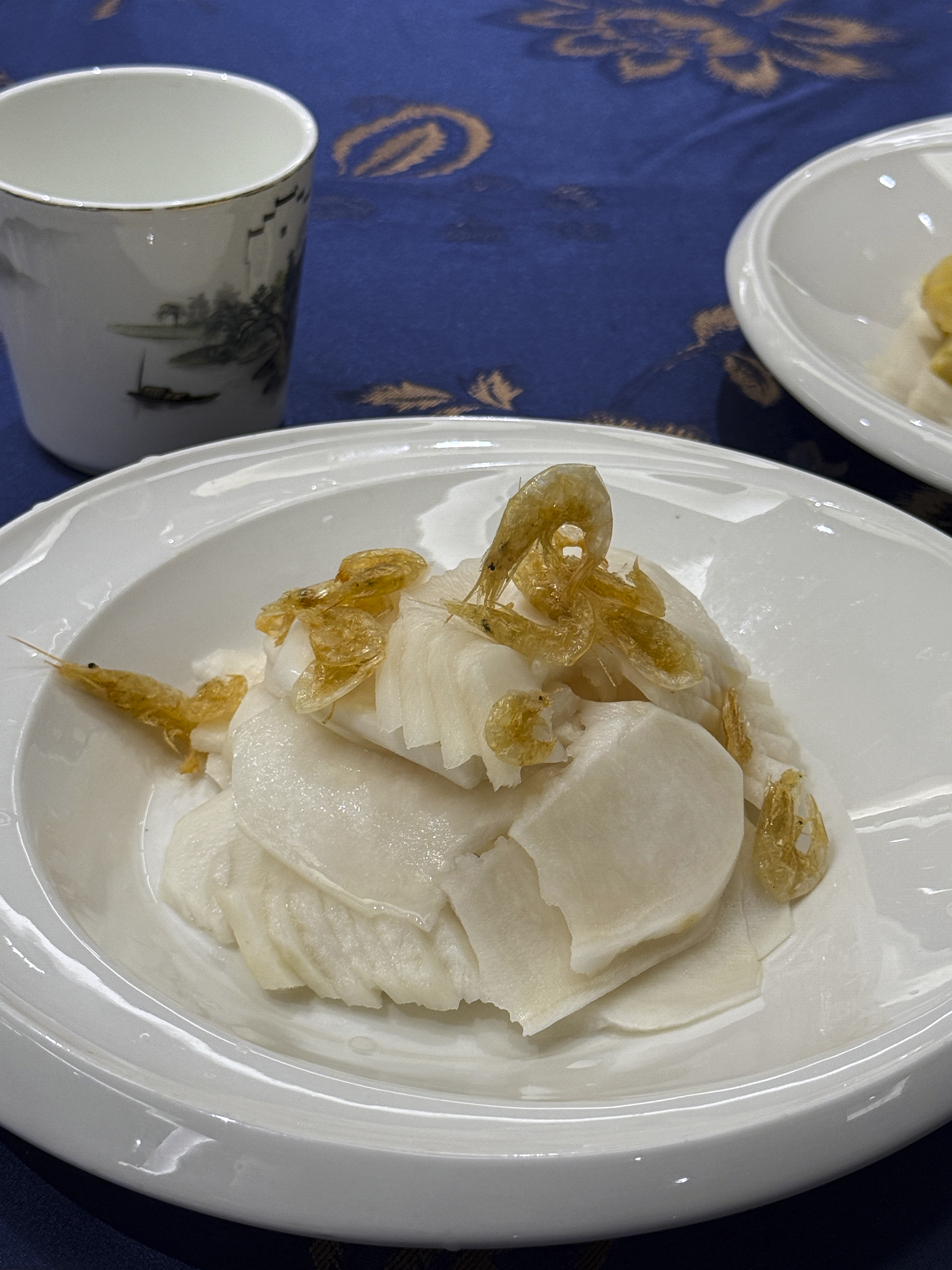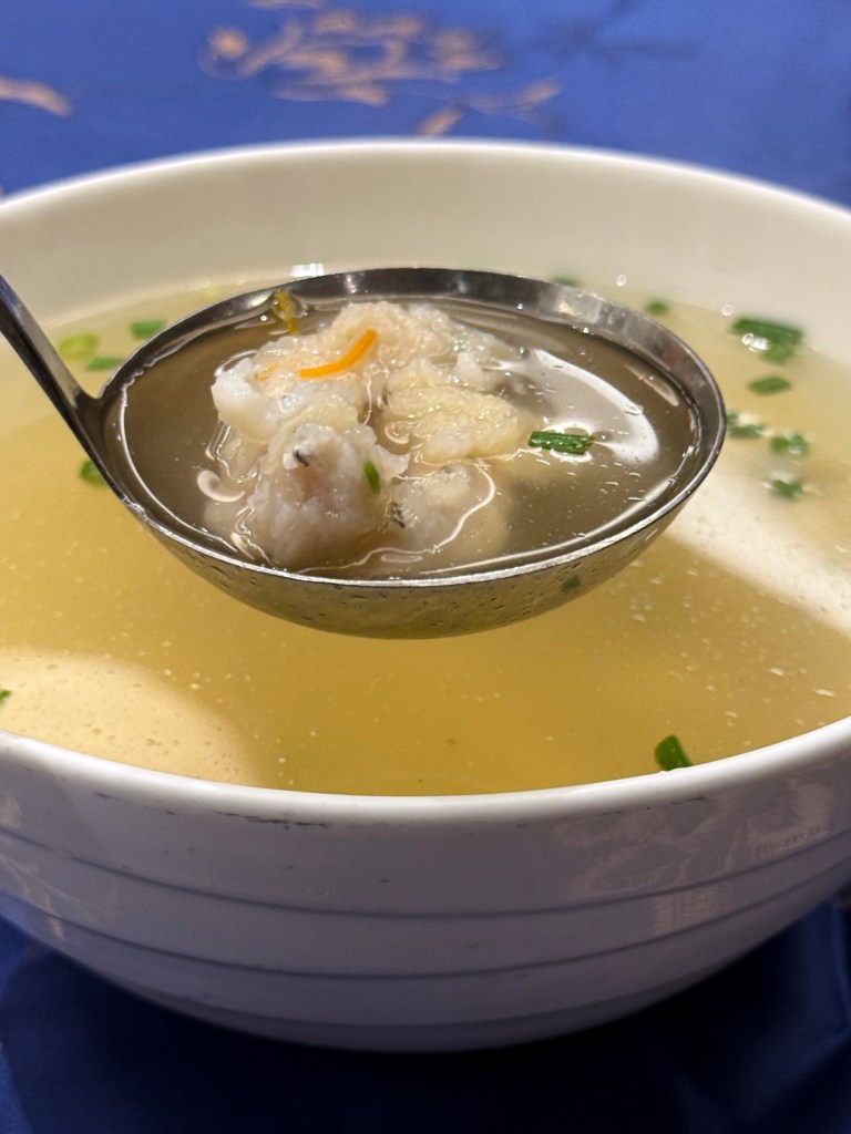 The head chef of the Chinese restaurant at the Wenzhou Sheraton Hotel is a renowned chef of Wenzhou cuisine. At the first dinner there, we enjoyed two interesting local meal: Pancai Raw and Fishball soup.