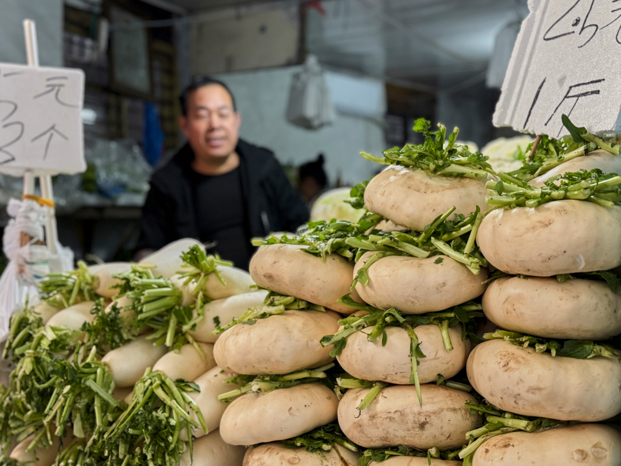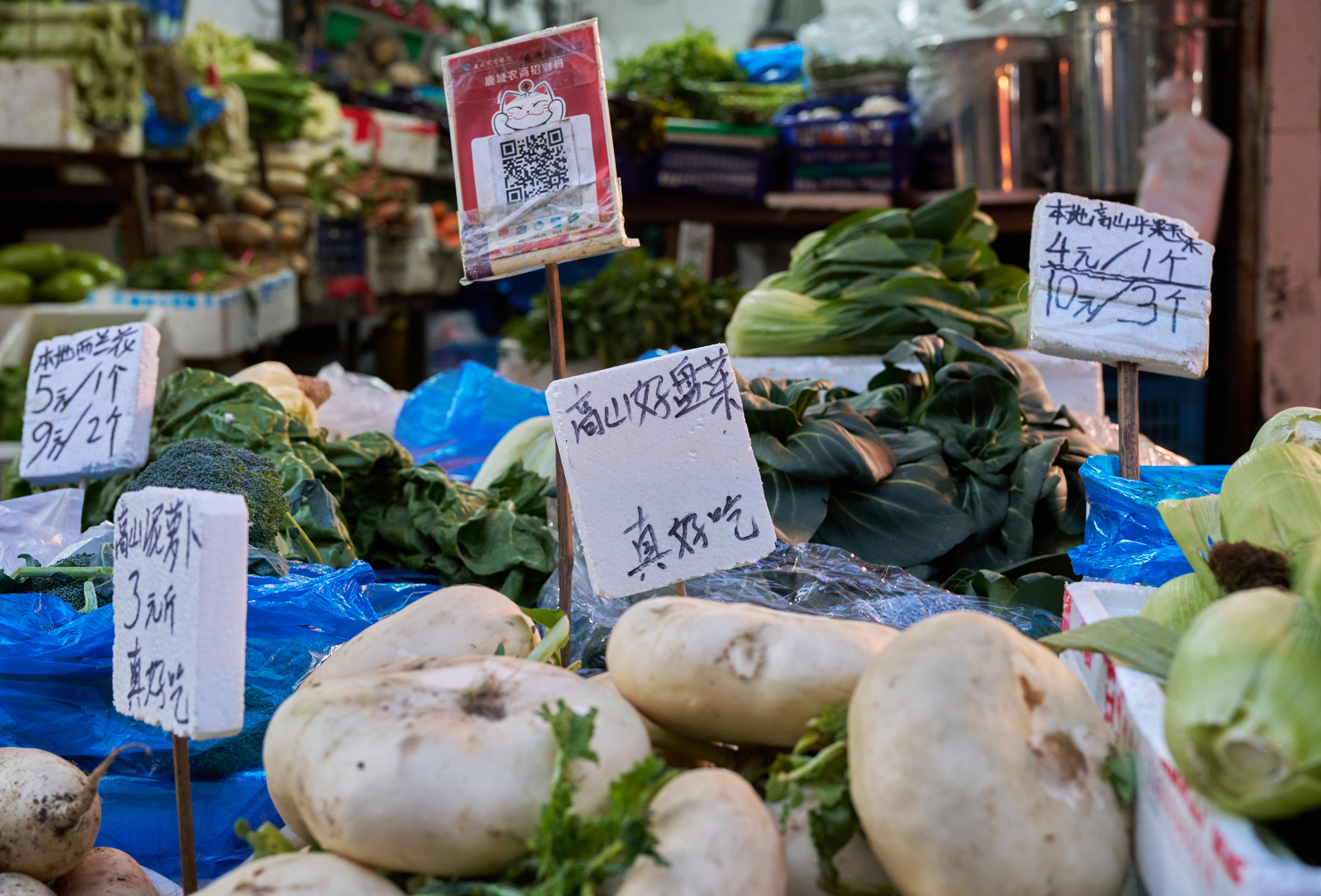 As for the Pancai, at first, we didn’t distinguish it from anything like radish. It wasn’t until a local woman took it out of the basket and showed it to us with a smile that we realized that this flat and round guy was everywhere in the market!